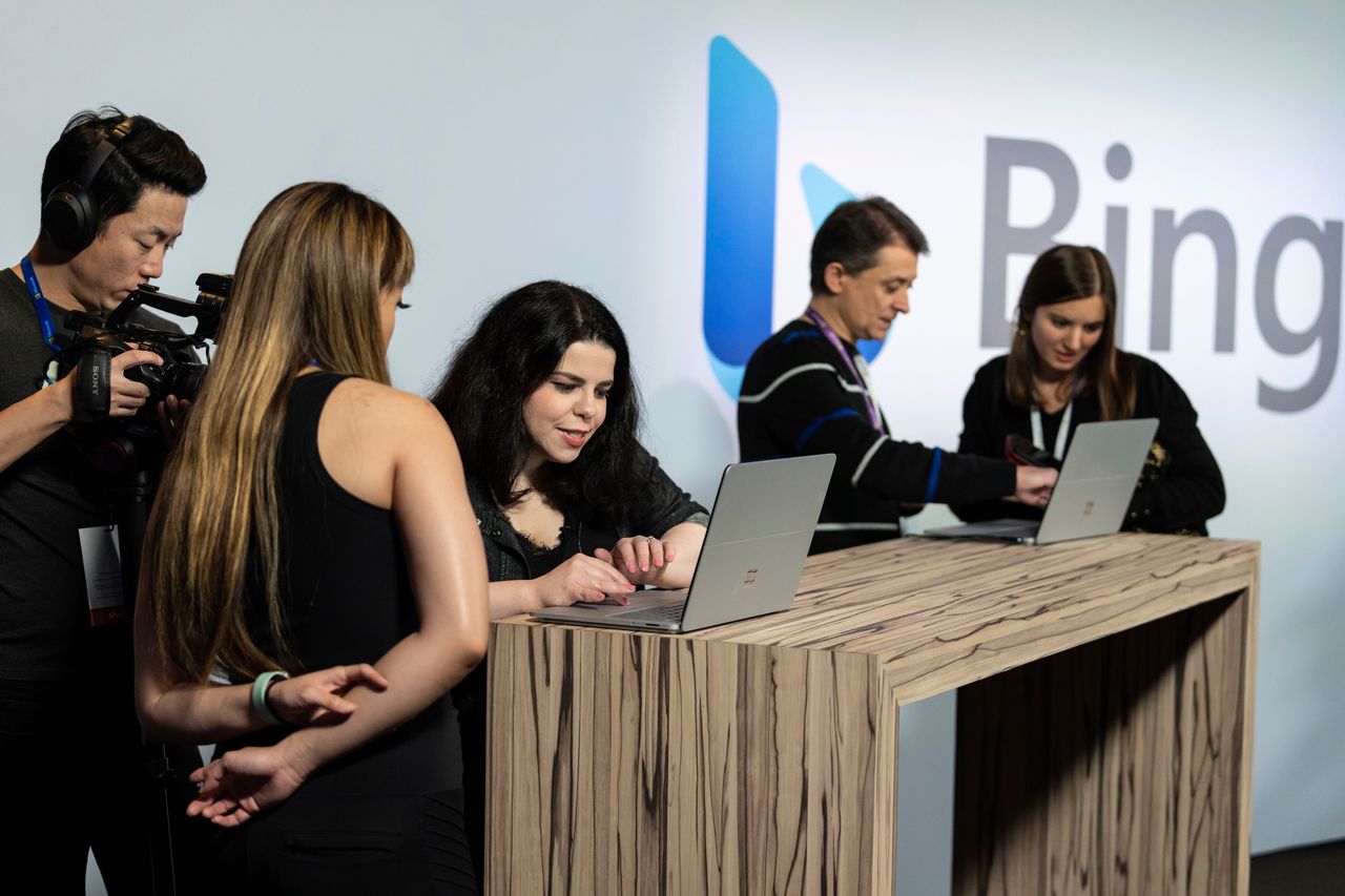 微軟員工展示該公司AI增強版必應搜索引擎的整合應用。圖片來源:Stephen Brashear/Associated Press"許多投資者表示:‘我可能會暫時觀望這股潮流,因為如果所有公司都基於ChatGPT搭建,那就更難找到贏家了。’“投資早期科技公司的Worklife Ventures創始人Brianne Kimmel説道。