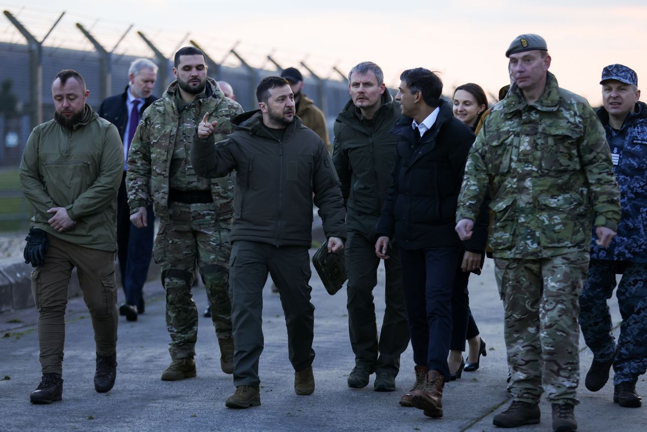 本月,烏克蘭總統澤連斯基與英國首相蘇納克視察在英格蘭盧爾沃思營地接受英軍訓練的烏軍士兵。圖片來源:霍莉·亞當斯/新聞聯合社隨着損失不斷增加,烏克蘭總統弗拉基米爾·澤連斯基上個月在該國一所頂尖大學對學生表示,軍事指揮官們正在制定新的動員計劃。