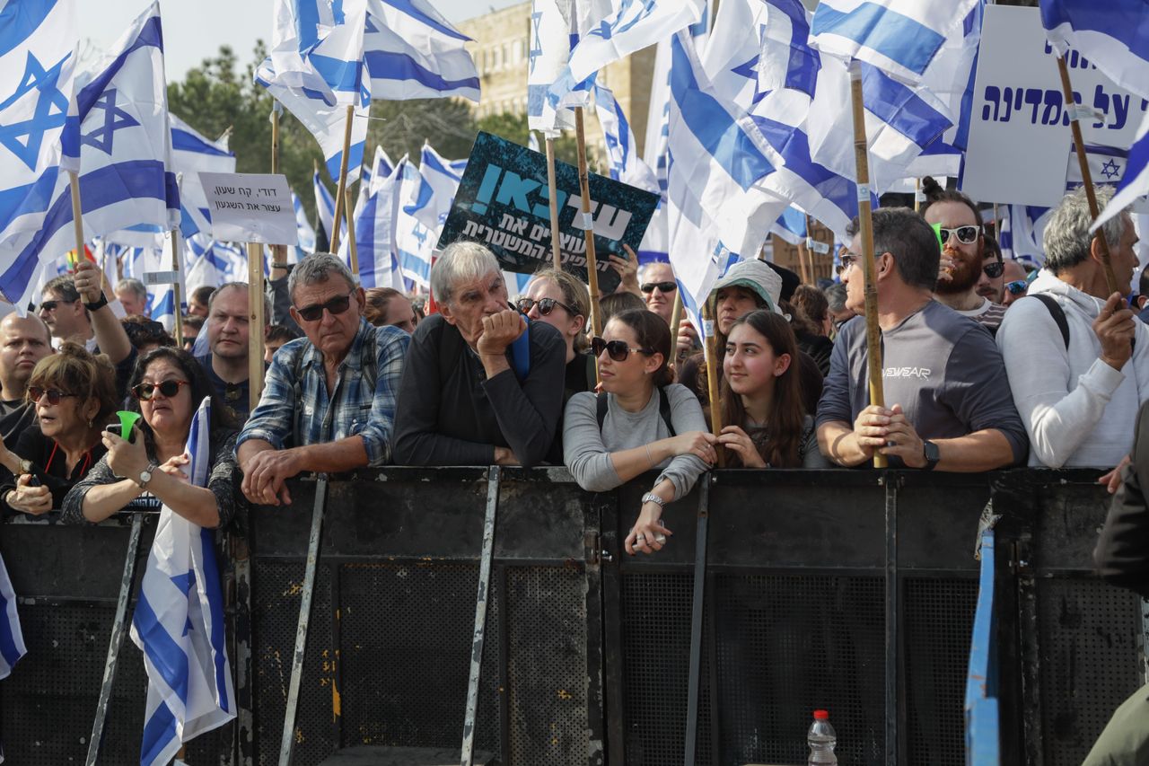 連續第二週,數萬名反對該立法的抗議者聚集在以色列議會(即克奈塞特)周圍。自政府上月宣佈將推進該立法以來,全國每週都有數十萬人蔘加示威活動。