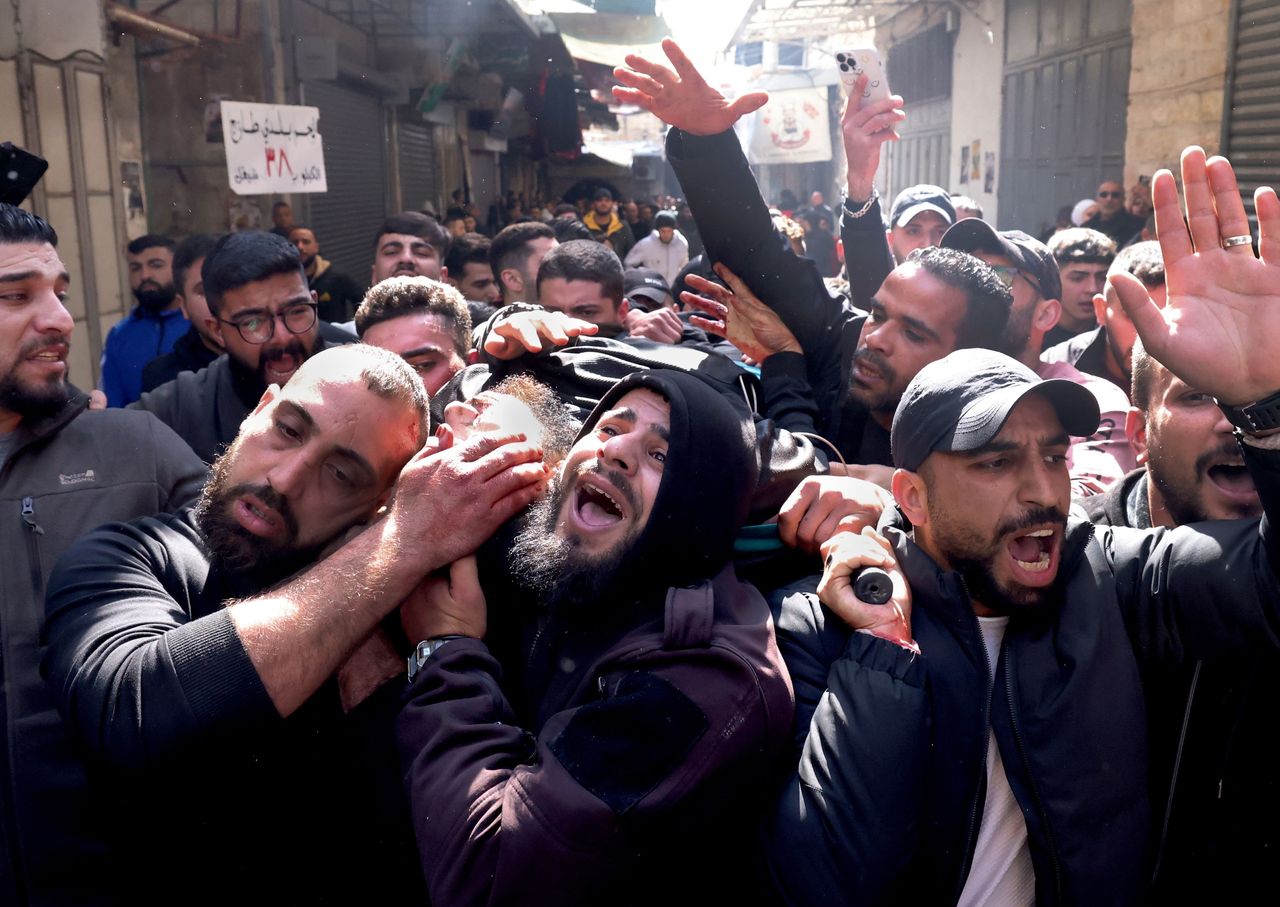 週三,巴勒斯坦人抬着一名在約旦河西岸城市納布盧斯槍戰中喪生的男子遺體。圖片來源:alaa badarneh/Shutterstock特拉維夫——巴勒斯坦衞生官員稱,週三以色列軍隊與武裝分子在約旦河西岸城市納布盧斯發生槍戰,造成至少11名巴勒斯坦人死亡,儘管國際社會努力緩和緊張局勢,該地區的暴力仍在升級。