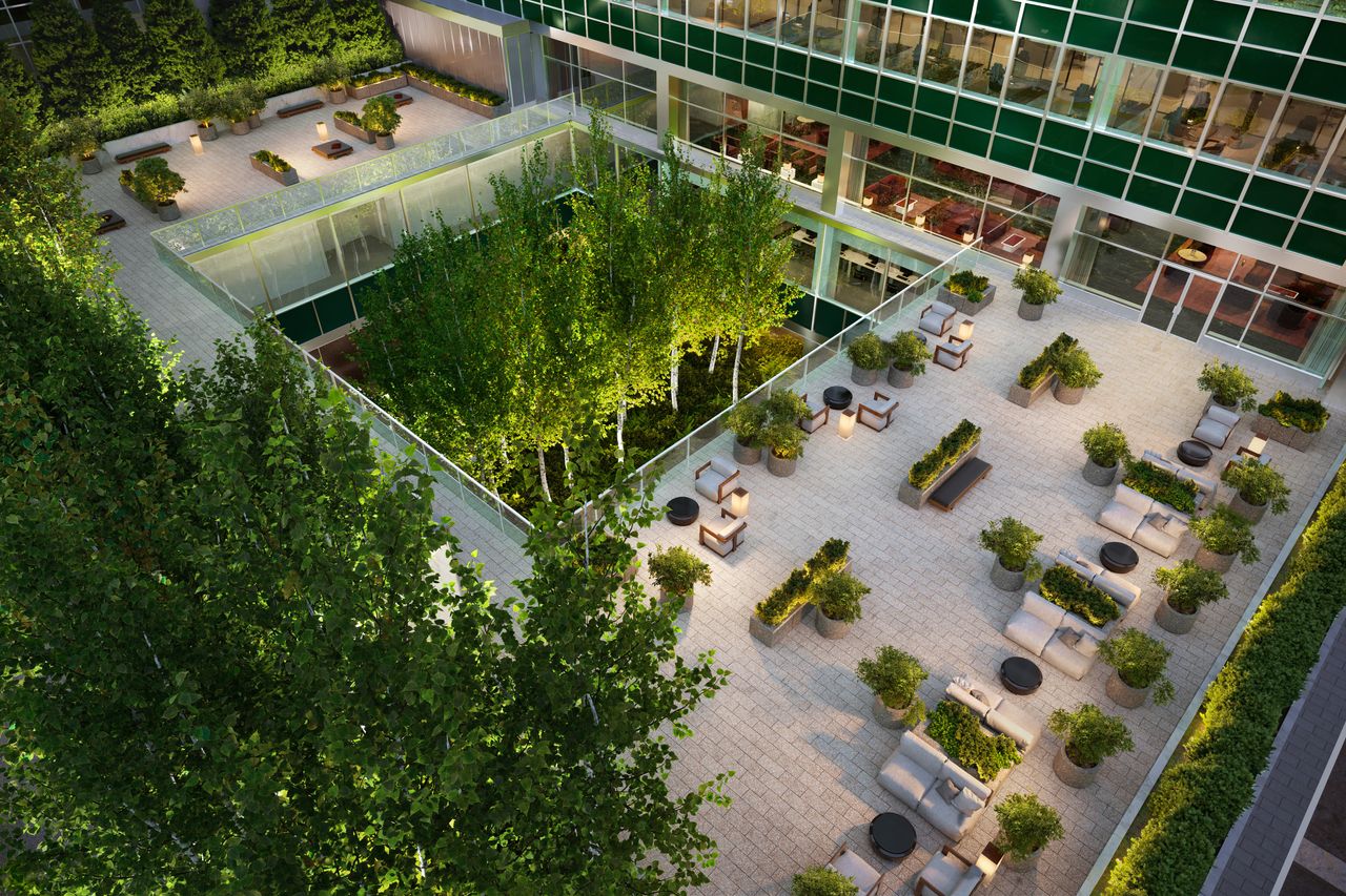 在紐約公園大道的地標建築——1951年建成的利華大廈,歷史上整層出租給單一租户的三樓正被改造為全樓共享的配套空間,其户外區域達13,540平方英尺(約1258平方米),配備桌椅。代表業主的世邦魏理仕集團副主席本·弗裏德蘭表示:“現在整棟樓的用户都能享受這個户外空間。”該配套樓層還包含室內協作區、會議室、餐廳和酒吧,使用費已包含在租金中,但餐飲和會議室預訂需額外收費。
