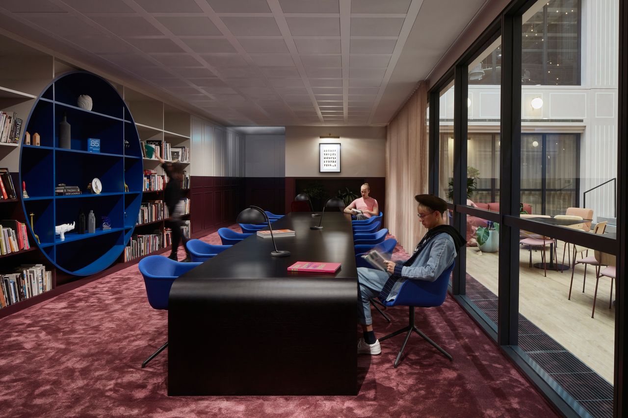 麥肯廣告公司2021年完工的倫敦辦公室設有一個圖書館,其規定明確禁止小組會議。圖片來源:Mark Cocksedge/Gensler這些舉措也針對內向者及其他在獨處或安靜環境中工作效率更高的員工,他們擔心重返辦公室後效率會下降。建築師和開發商表示,除了圖書館和其他無噪音區域,獨立的隔音艙將成為辦公樓的必備設施。
