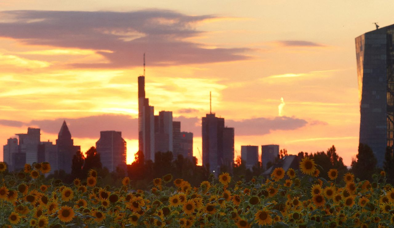 資料圖片:2022年9月1日,德國法蘭克福,夕陽下盛開的向日葵與歐洲央行總部大樓相映成趣。圖片來源:KAI PFAFFENBACH/路透社隨着能源價格趨穩以及對經濟深度衰退的擔憂消退,德國消費者信心指數預計將在3月連續第五個月回升。