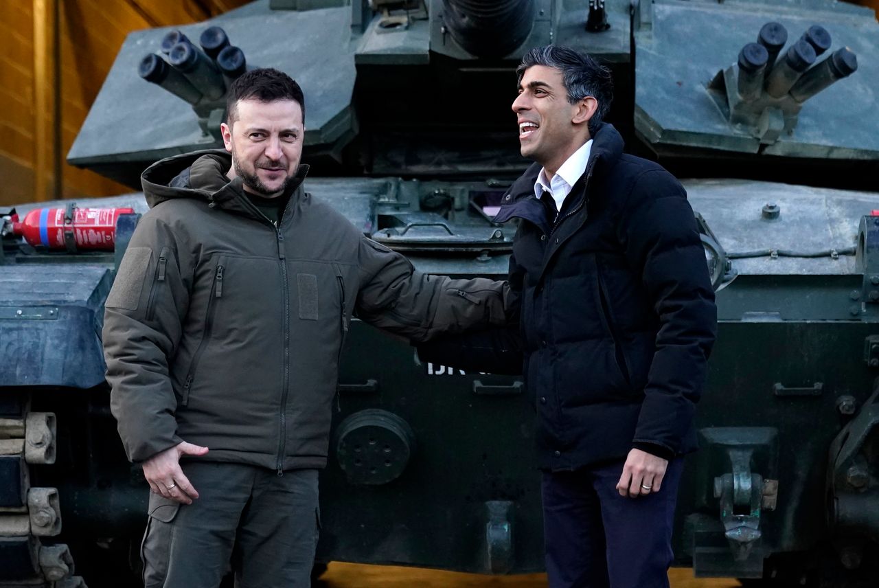 2月8日,烏克蘭總統澤連斯基(左)與英國首相蘇納克在捐贈給戰場的英國"挑戰者2"坦克前合影。圖片來源:Andrew Matthews/Pool/Associated Press烏克蘭外長庫列巴表示:“在外交領域,道德通常是輿論敍事而非真實決策的要素。但烏克蘭案例證明,基於道德訴求的同情心確實能扭轉乾坤。某些政府的行動不僅出於實際考量,更迫於國內輿論壓力——而這種輿論壓力正源於對侵略受害者的道德同情。”