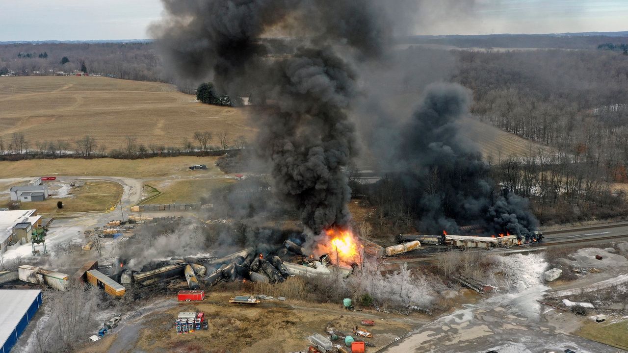 2月4日,俄亥俄州東巴勒斯坦市諾福克南方鐵路貨運列車部分車廂。圖片來源:Gene J. Puskar/美聯社