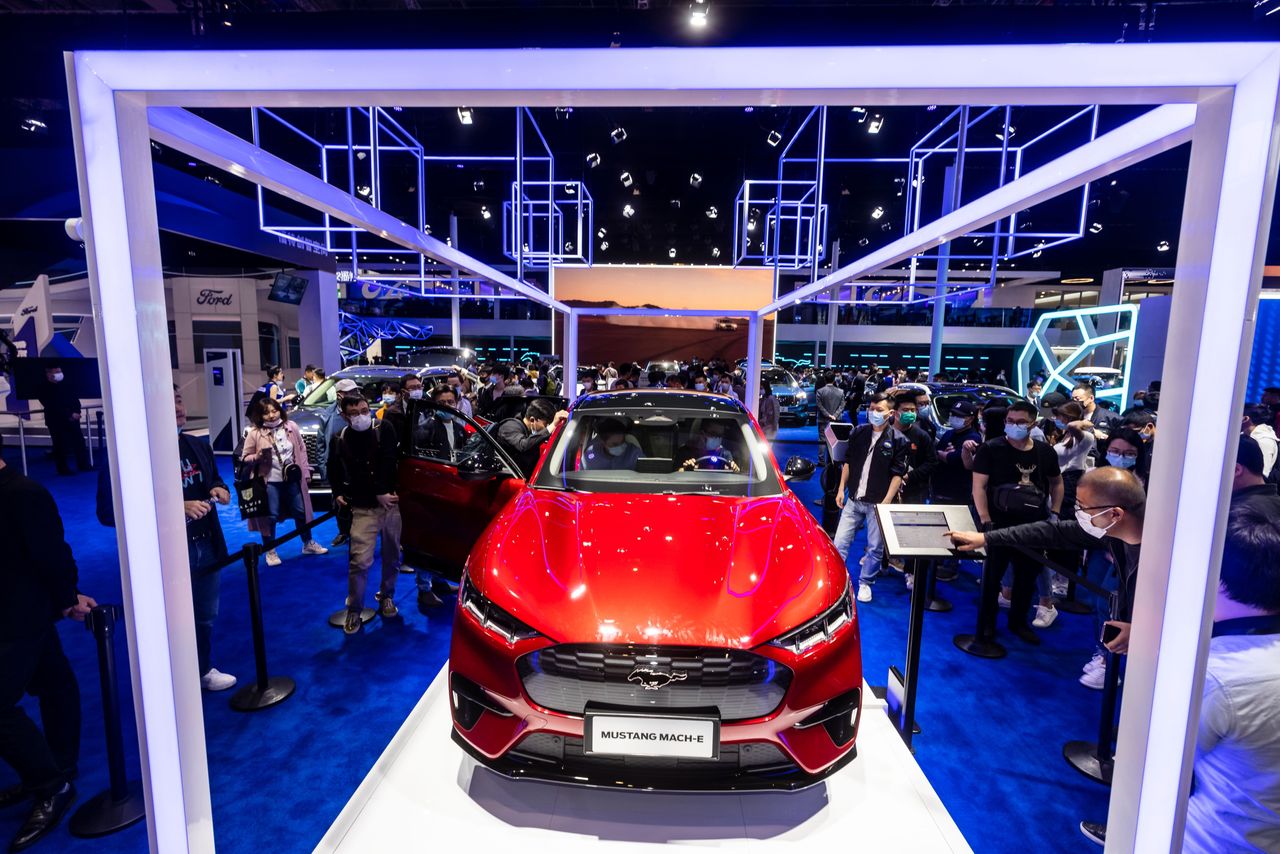 上海車展上展出的福特野馬Mach-E。圖片來源:alex plavevski/EPA/Shutterstock刊登於2023年2月25日印刷版,標題為《福特任命中國業務新負責人》。