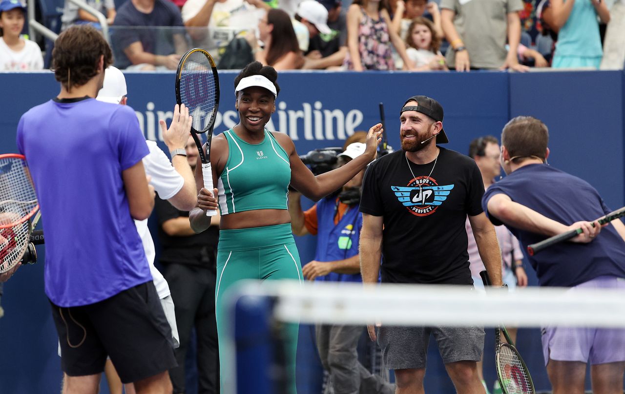 2022年8月27日,美國網球公開賽前的兒童日活動上,網球名將維納斯·威廉姆斯和泰勒·弗裏茨與完美搭檔成員在USTA比利·簡·金國家網球中心同場競技。圖片來源:傑米·斯夸爾/蓋蒂圖片社五個月後,他們上傳了一段18秒的視頻,記錄成員泰勒·託尼在德州農工大學橄欖球場凱爾球場的第三層看台投進超遠三分。全國媒體轉載了這段視頻,使他們迅速成為YouTube早期網紅。根據YouTube數據追蹤機構Social Blade統計,完美搭檔的視頻總觀看量超過155億次,在體育頻道中僅次於WWE排名第二。