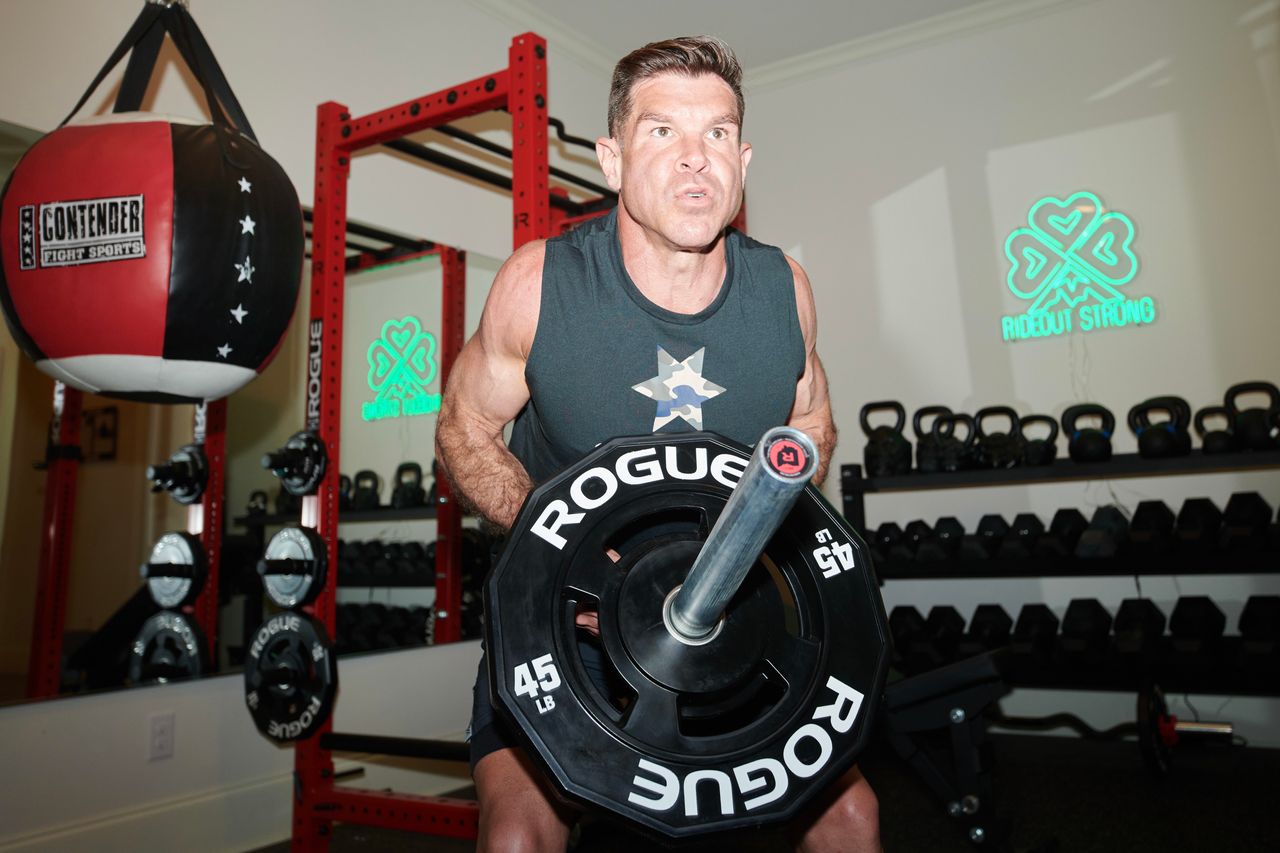 身高5英尺10英寸(約1.78米)、體重157磅(約71公斤)的裏德奧特先生對自己肌肉發達的身材感到自豪。他每週有三到四天在家裏的健身房進行力量訓練。“我會針對上半身做一些增肌訓練,這樣就不會顯得太瘦弱,“他説。他會用不同的握法做3到4組、每組20個引體向上,然後做卧推和壺鈴搖擺。他還通過深蹲鍛鍊腿部肌肉,用蚌式開合鍛鍊臀部。