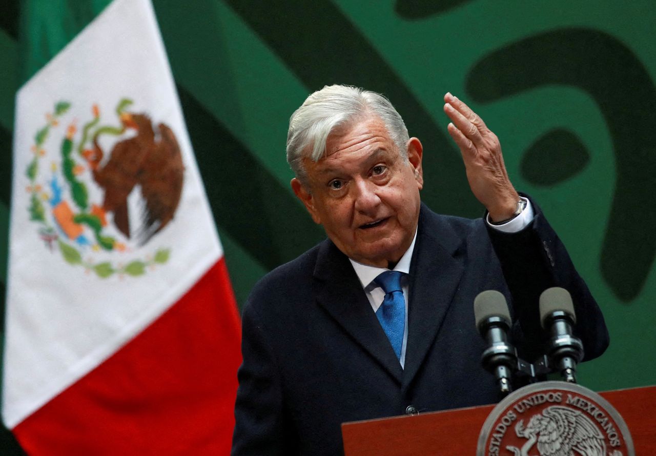 2023年1月20日,安德烈斯·曼努埃爾·洛佩斯·奧夫拉多爾總統在墨西哥城老市政廳發表講話。圖片來源:HENRY ROMERO/REUTERS刊載於2023年2月27日印刷版,標題為《特斯拉遭遇洛佩斯·奧夫拉多爾法則》