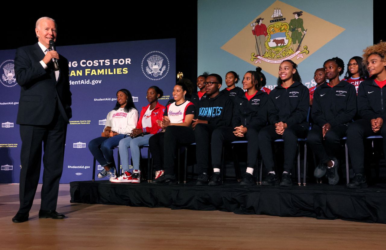 2022年10月,拜登總統在特拉華州立大學討論學生債務減免計劃。圖片來源:LEAH MILLIS/REUTERS據政府官員和熟悉討論內容的人士透露,白宮官員為此爭論逾一年,拜登本人也公開質疑未經國會批准實施全面減免計劃的合法性。2021年他在CNN市政廳會議上表示:“我不認為僅憑簽字就能獲得這項權力”。