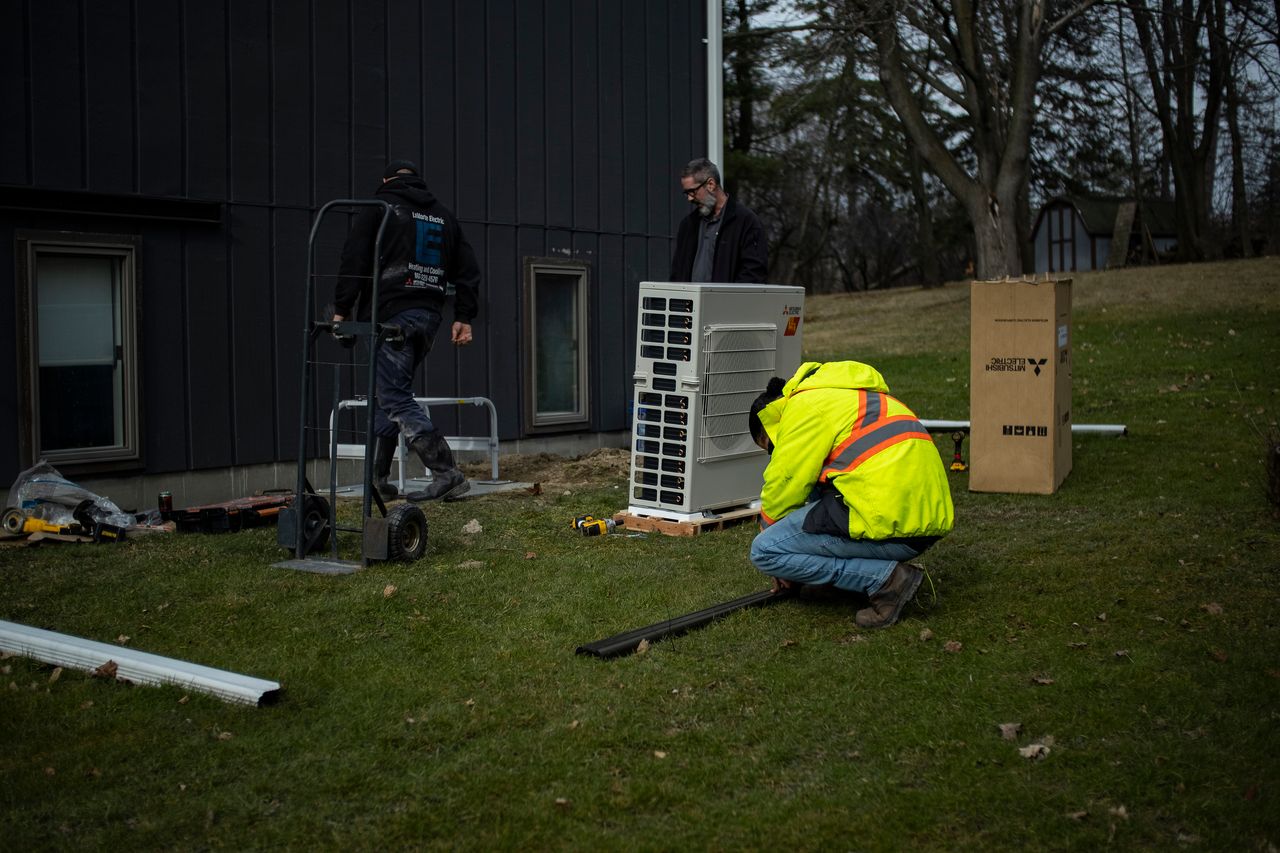 在伊薩卡市最近的一週,拉莫特先生的三名員工正為40歲的工程師馬修·米尼格安裝熱泵。米尼格與妻子住在四居室住宅中,希望用這種在室內外循環空氣的設備取代冬季使用的天然氣鍋爐,並增添夏季空調功能。