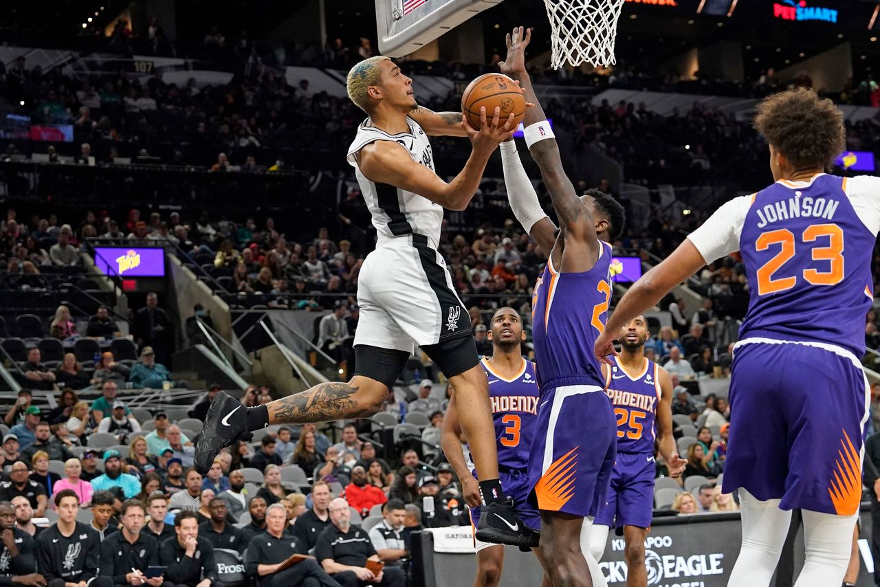 傑里米·索尚在1月28日對陣菲尼克斯太陽隊的比賽中砍下生涯新高的30分。圖片來源:斯科特·瓦赫特/今日美國體育刊載於2023年3月1日印刷版,標題為《NBA新秀找到解決罰球困境的方法》。