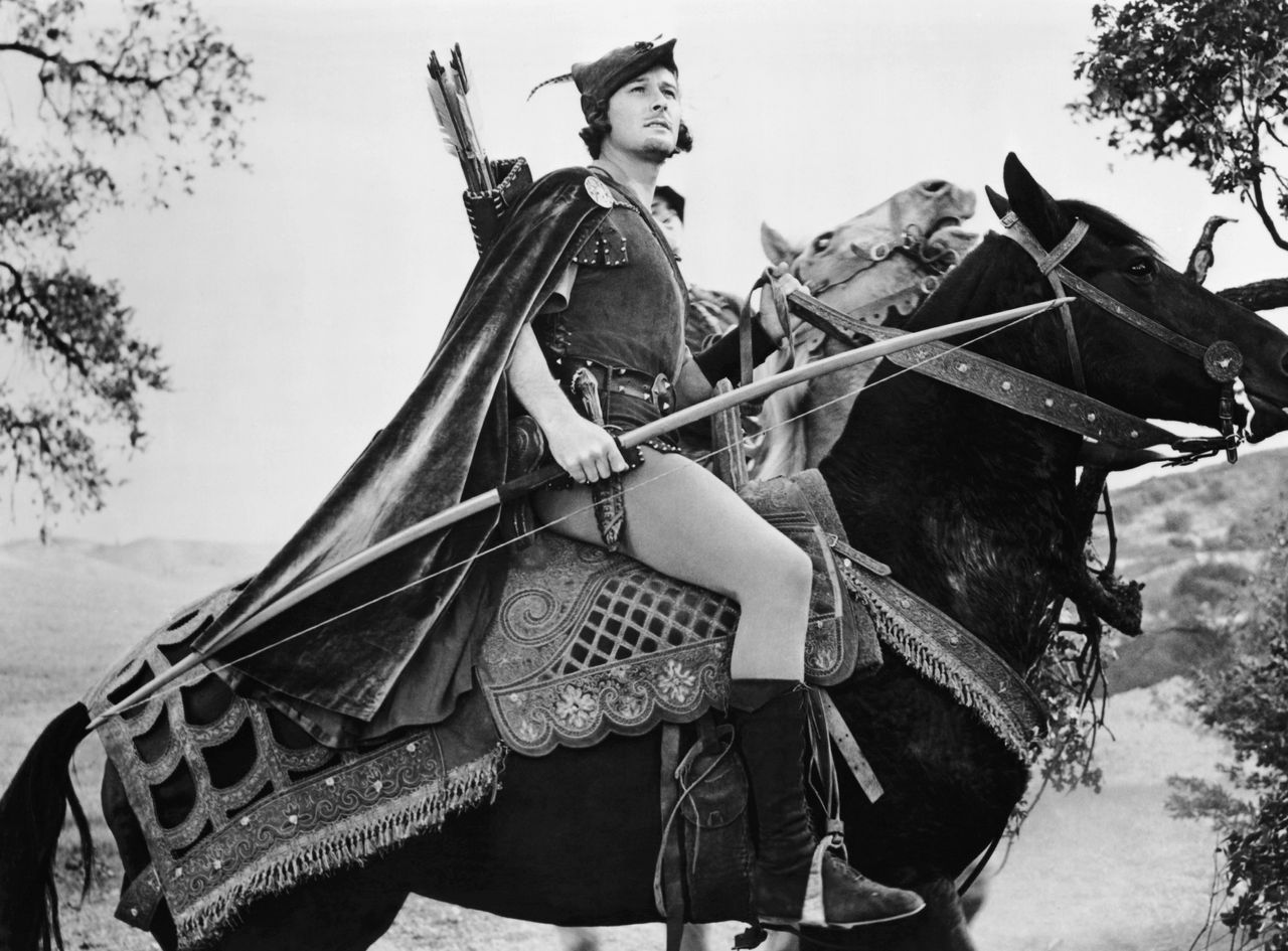 弗林的表演融合了矛盾的特質:對崇高台詞與英雄姿態的隨意處理;浪漫中夾雜着不羈或憂鬱;渾然天成且毫不做作的世故;以及隱藏在虛張聲勢之下的瞬間矛盾與猶疑。他塑造的羅賓漢兼具正義、機智與俊美,至今無人能及。當他肩扛違禁獵物——一頭鹿角崢嶸的雄鹿——昂首踏入蓋伊城堡,或是高呼撒克遜反抗宣言時,很少有人能抗拒這激動人心的畫面。