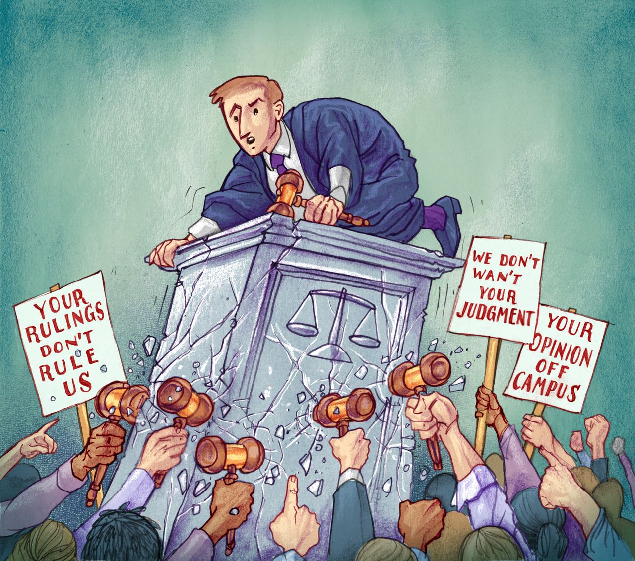 插圖:大衞·克萊因刊登於2023年3月18日印刷版,標題為《我在斯坦福法學院的批鬥會》。