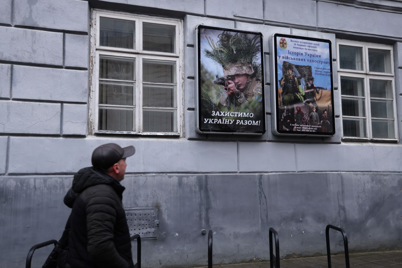 烏克蘭西部利沃夫的一幅軍事海報上寫着:“我們共同保衞烏克蘭。”圖片來源:Sean Gallup/Getty Images戰爭重創了烏克蘭和俄羅斯的專業軍隊。莫斯科方面去年9月徵召了30多萬名男子作為回應,總統弗拉基米爾·普京已告訴俄羅斯人要做好打持久戰的準備。
