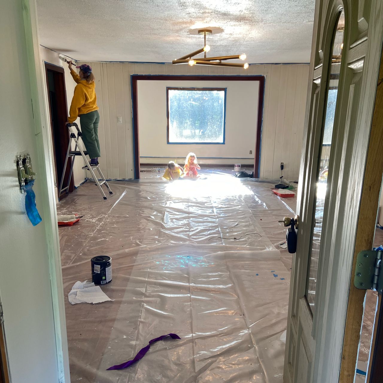 奧頓·弗爾在找不到工人後,親自動手粉刷她在卡茨基爾山的家。圖片來源:奧頓·弗爾2021年夏天,埃文·穆迪和奧頓·弗爾在紐約卡茨基爾山購置了第二套住宅。這對夫婦原以為清單上幾項外觀翻新和維修工作只需幾個月就能完成。但近兩年過去了,房子仍未完工。