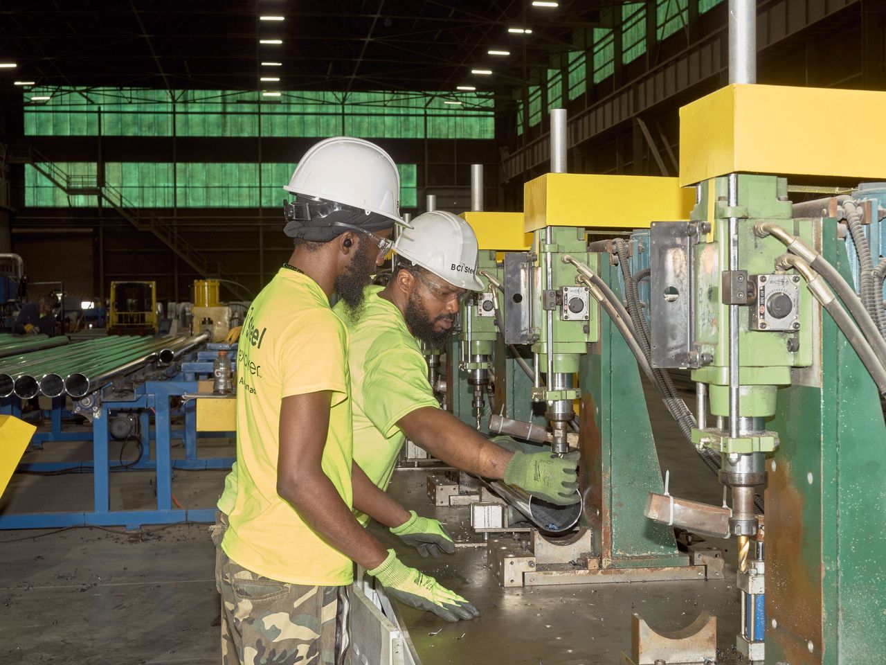 BCI鋼鐵公司在賓夕法尼亞州利茨代爾生產太陽能板跟蹤器的鋼管。美國鋼鐵製造商表示,使用進口鋼材的設備不應被視為美國製造。圖片來源:Ross Mantle/《華爾街日報》許多可再生能源開發商正在推動一項國內成分標準,希望藉此允許他們使用大量進口鋼鐵部件。