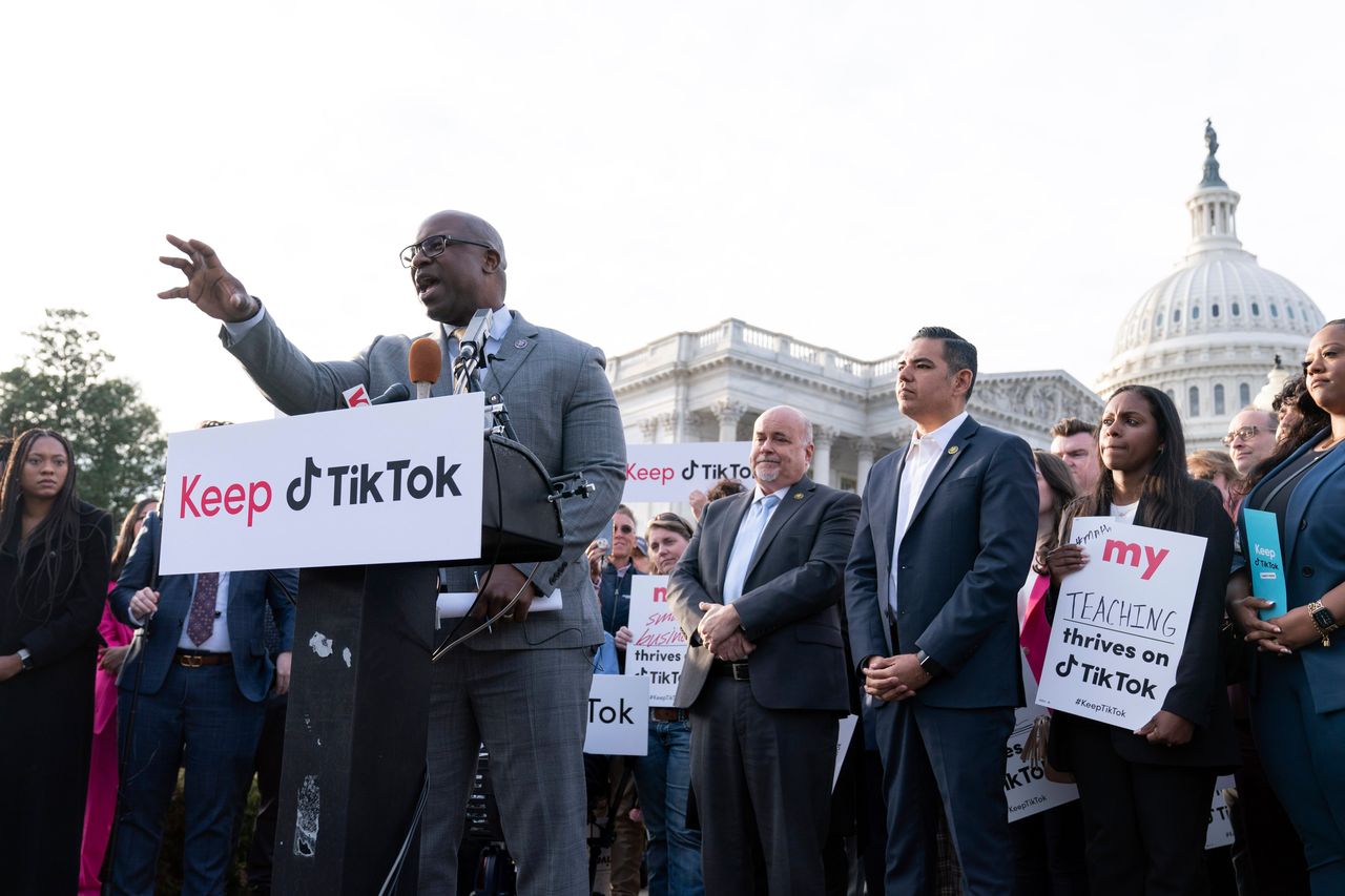 紐約州民主黨眾議員賈馬爾·鮑曼週三在華盛頓集會上表達了對TikTok禁令的反對。圖片來源:何塞·路易斯·馬加納/美聯社紐約州民主黨眾議員賈馬爾·鮑曼週四與約20名TikTok網紅舉行記者會,暗示存在針對中國的排外情緒,國會應更廣泛地關注社交媒體問題。