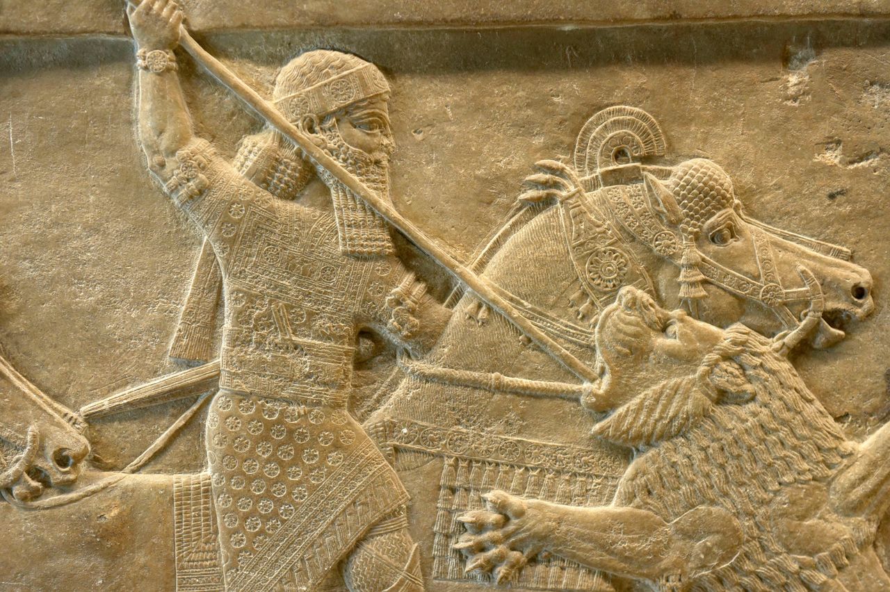 希伯來作者的敍述固然片面,但他們的觀點曾長期佔據主流。過去兩個世紀數十萬亞述泥板楔形文字文獻的重見天日,讓我們得以從亞述人自身視角審視這段歷史,這本身就是個激動人心的發現。這些文獻非但未能消除關於亞述嗜血本性的傳聞,反而佐證了其真實性。亞述納西拔二世王曾自誇某次勝戰後:“我生擒眾多敵兵,或斷其臂膀,或割其鼻耳四肢,又剜去無數兵卒雙目,將其首級懸於城外樹梢,更將眾多少男少女焚為灰燼。“這種野蠻的雄性氣概在著名的獵獅浮雕中同樣顯露無遺——蓄鬚的亞述諸王以令人驚歎的從容姿態,用長矛刺向齜牙咧嘴的猛獸。難怪先知約拿奉上帝之命前往尼尼微譴責亞述人的罪孽時,曾試圖逃往天涯海角。
