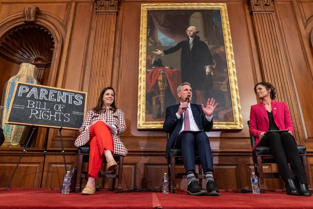 共和黨眾議員埃莉斯·斯特凡尼克、凱文·麥卡錫和朱莉婭·萊特洛本月早些時候在國會山討論了《家長權利法案》。圖片來源:傑奎琳·馬丁/美聯社華盛頓——眾議院通過了一項由共和黨支持的議案,該議案將擴大家長對其子女教育的權利,這是圍繞美國公立學校中關於種族、性別認同和性取向討論的文化鬥爭的最新進展。