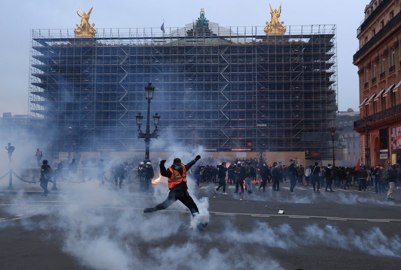 但他的講話並未平息抗議活動。週四,巴黎的示威者點燃垃圾,砸碎商店櫥窗,並向警察投擲煙花和其他投射物,警察則以發射催淚瓦斯回應。週四,警方在全法國拘留了457人。