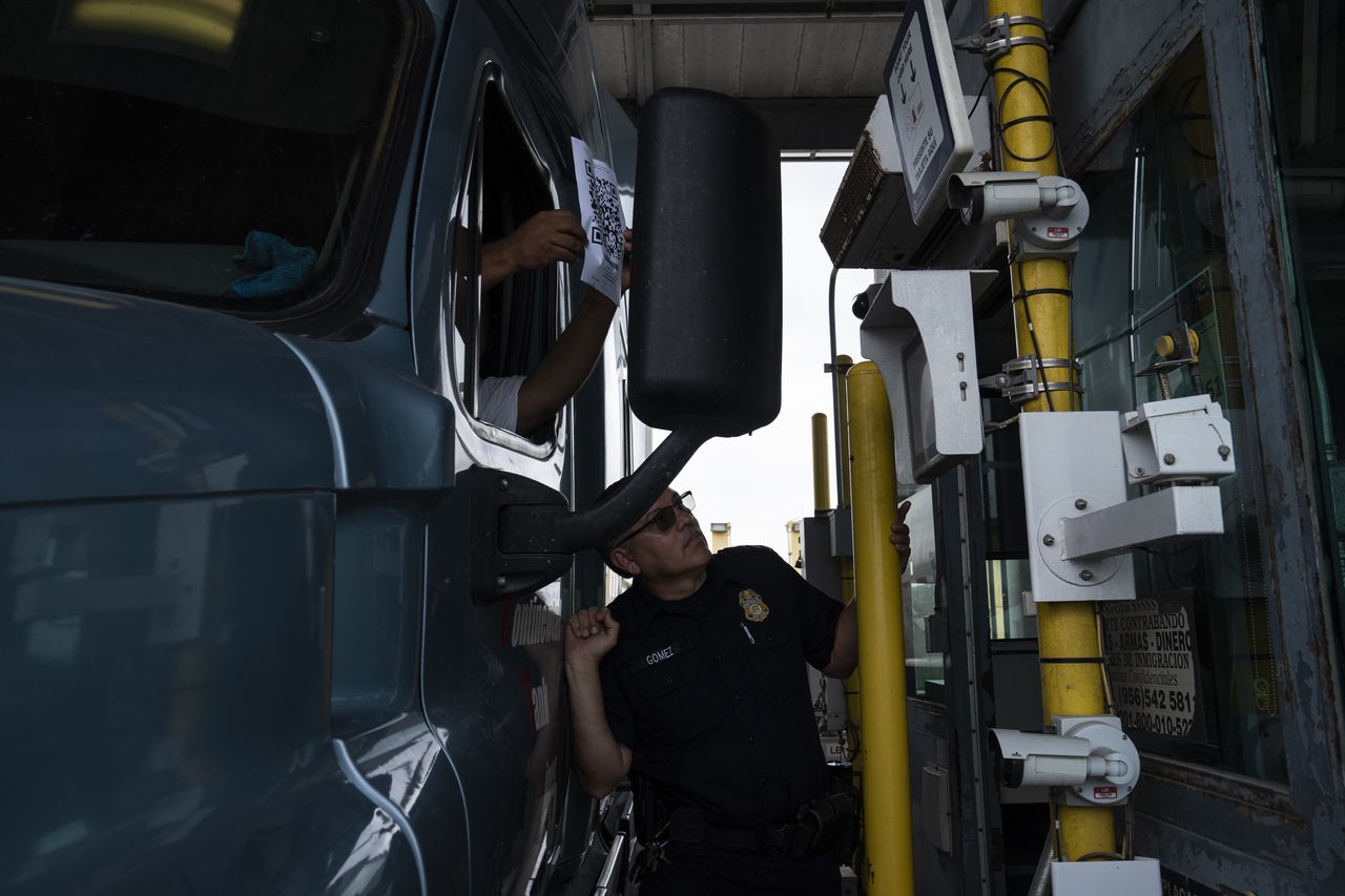 海關人員協助司機出示載有貨車貨物所需信息的二維碼。在錫那羅亞販毒集團老巢庫利亞坎市外,一名芬太尼實驗室及假藥工廠的經營者表示不擔心新技術:“他們不可能攔截所有車輛,方法多的是。”