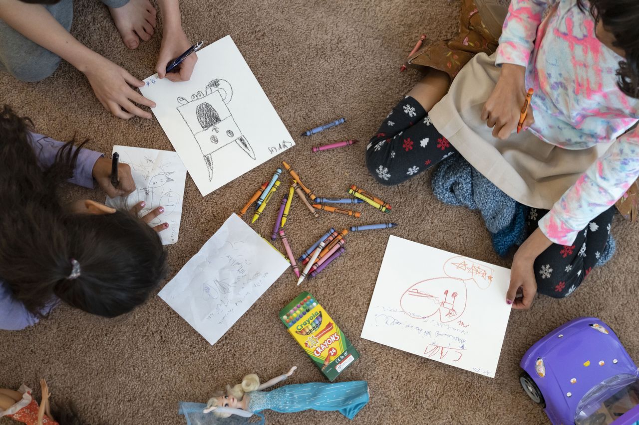 7歲的梅里達、9歲的賽勒斯和7歲的阿米拉·保羅在家中畫畫。他們的母親表示,ADHD藥物的短缺導致她的雙胞胎女兒出現行為問題。照片:麗貝卡·諾布爾為《華爾街日報》拍攝據保羅女士稱,這兩個在當地小學上二年級的女孩因停藥期間出現的行為問題多次被停課。她説,其中一個女孩曾向老師臉上扔泥土。