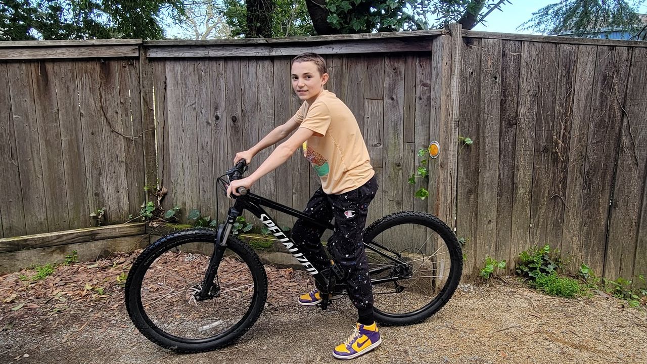 Skye Hermans想要一輛電動自行車,但在接下來的一年裏,他只能繼續使用傳統的山地自行車。照片:Leya Hermans### 電動自行車與兒童