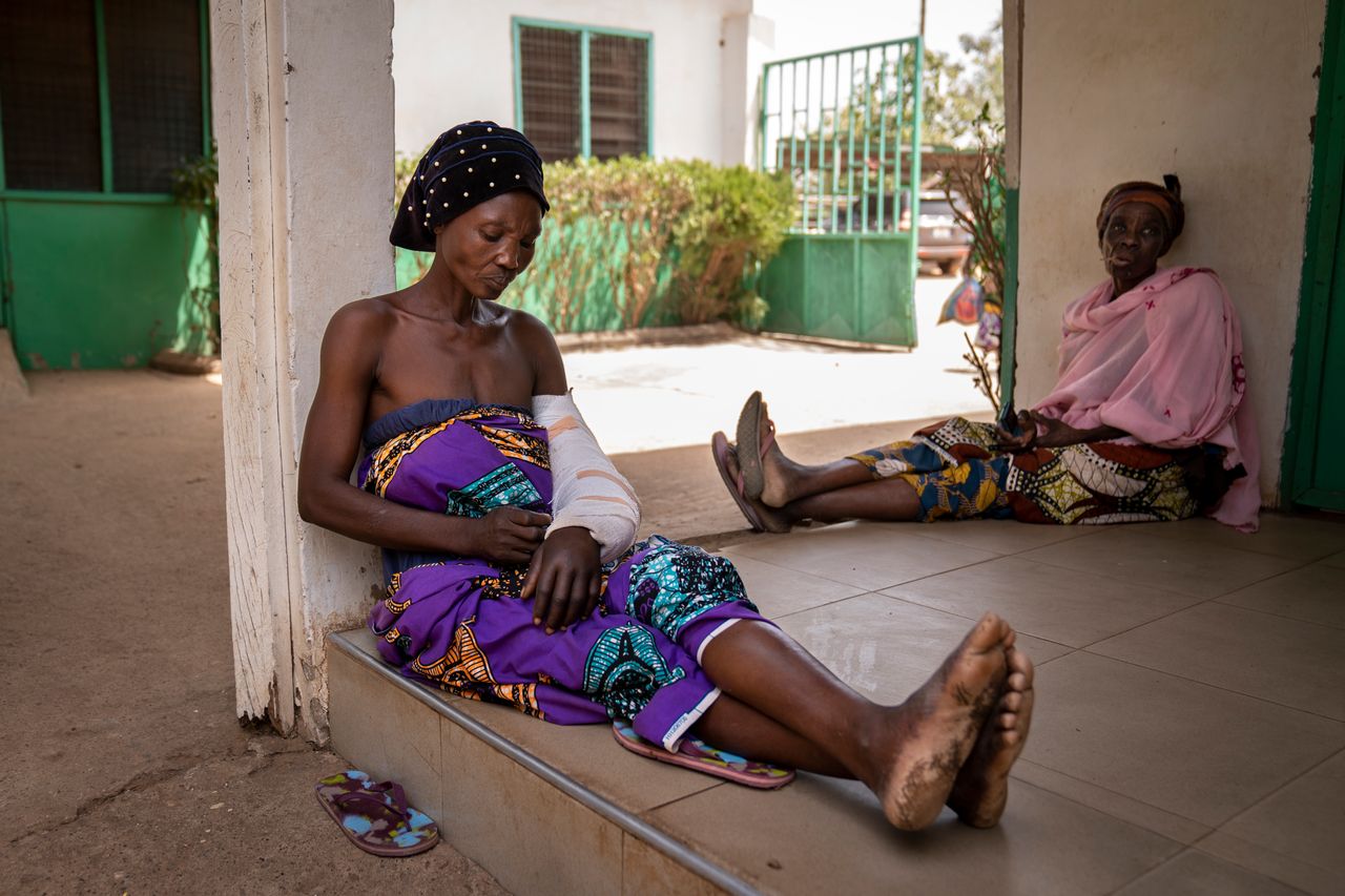 莉傑圖·蘇米拉(左)在巴烏庫庫薩西地區一家醫院的院子裏休息。