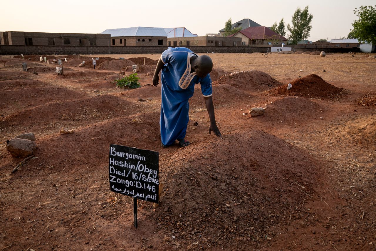 親屬探望布尼亞明·哈希姆的墳墓。他在前往母親葬禮途中遭遇槍手襲擊身亡。巴古拉先生參加了42歲裁縫布尼亞明·哈希姆的葬禮,這位中立的豪薩族人原本居住在其他城市,冒險驅車返回博爾古參加母親葬禮。