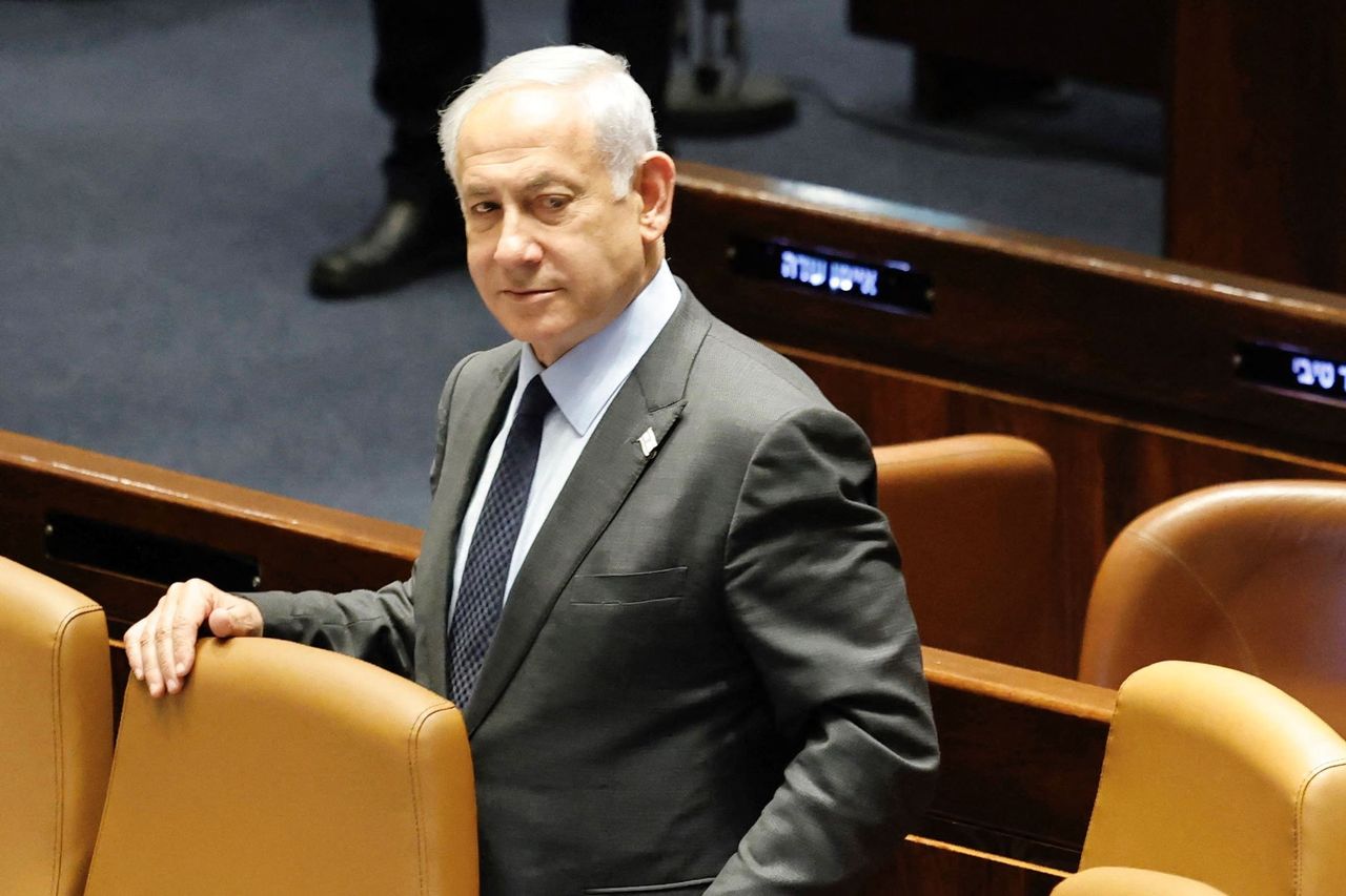 3月27日,以色列總理本傑明·內塔尼亞胡站在耶路撒冷的以色列議會。圖片來源:marc israel sellem/法新社/蓋蒂圖片社刊載於2023年3月28日印刷版,標題為《內塔尼亞胡提出妥協》。