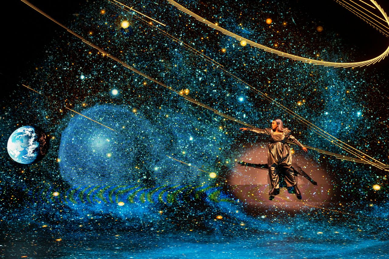 為強化三部歌劇的關聯性,沙倫先生在演出中交錯呈現前兩部作品的場景,並以《夜》的獨幕作為第一幕壓軸。不同音樂語言的並置出乎意料地流暢(指揮家卡澤姆·阿卜杜拉功不可沒),但真正將三部歌劇統一為完整戲劇之夜、並彌補各部分表現力參差的,是傑森·H·湯普森與凱特琳·皮特拉斯設計的那套精湛的高科技舞台製作。