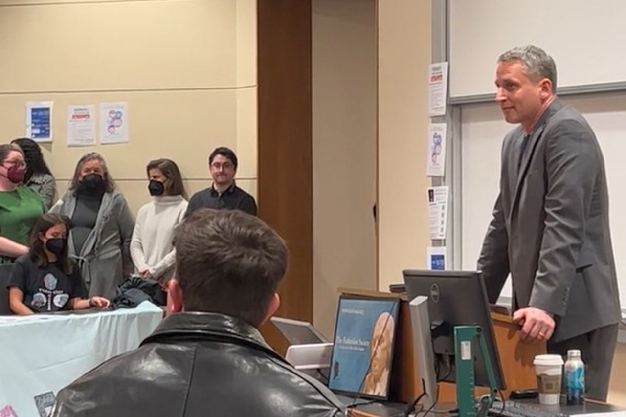 美國巡迴法院法官凱爾·鄧肯3月9日在斯坦福法學院演講時的場景。圖片來源:Vimeo截圖/倫理與公共政策中心刊登於2023年3月28日印刷版,標題為《僱主需對覺醒的不寬容採取強硬措施》。