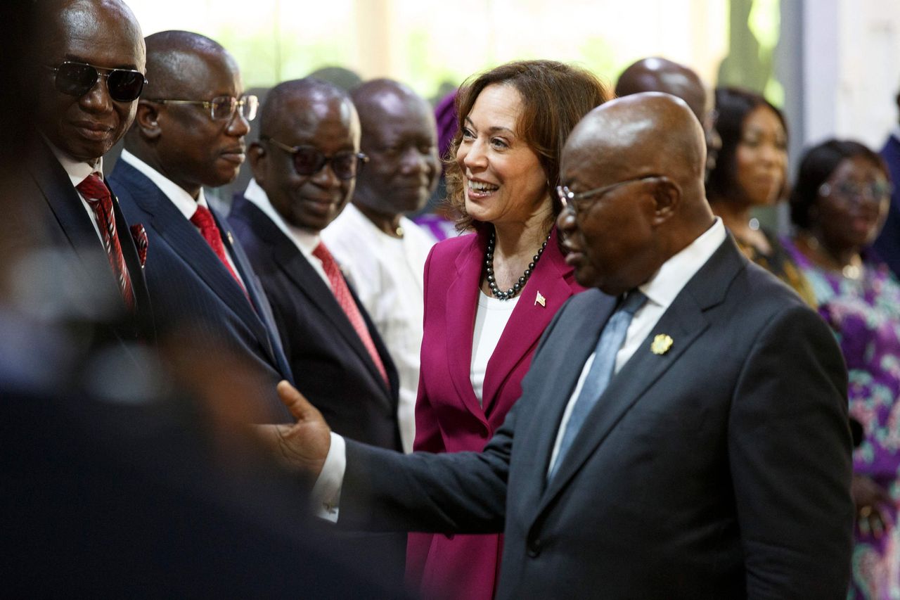 美國副總統卡瑪拉·哈里斯與加納總統納納·阿庫福-阿多(系藍色領帶)在加納首都阿克拉會晤,這是她非洲三國之行的首站。圖片來源:米斯珀·阿帕烏/法新社/蓋蒂圖片社哈里斯本週還將訪問坦桑尼亞和贊比亞,預計將宣佈與美國主要企業建立一系列新的公私合作伙伴關係。