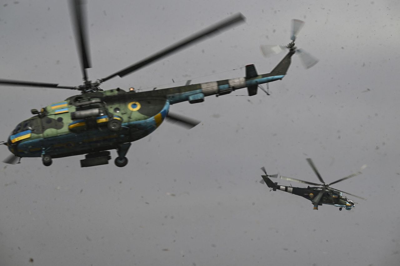 直升機起飛執行針對俄羅斯目標的作戰任務。圖片來源:法新社供稿人#法新社/法新社/蓋蒂圖片社