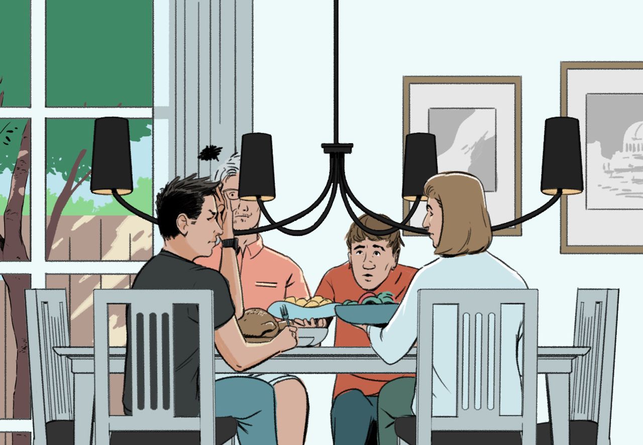 插圖:蓋伊·希爾德“我曾見過一個吊燈垂得太低,幾乎貼着餐桌邊緣,連那家的大孩子都抱怨會撞到頭!”——舊金山室內設計師諾茲·野澤