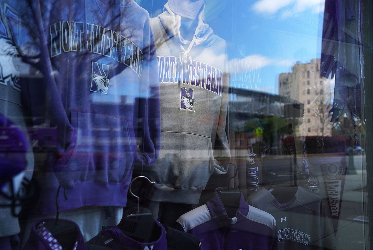 2020年10月,西北大學的服飾在埃文斯頓的瑞安球場對面展示。照片:E. Jason Wambsgans/Zuma Press寫信給 道格拉斯·貝爾金,郵箱:[email protected]
