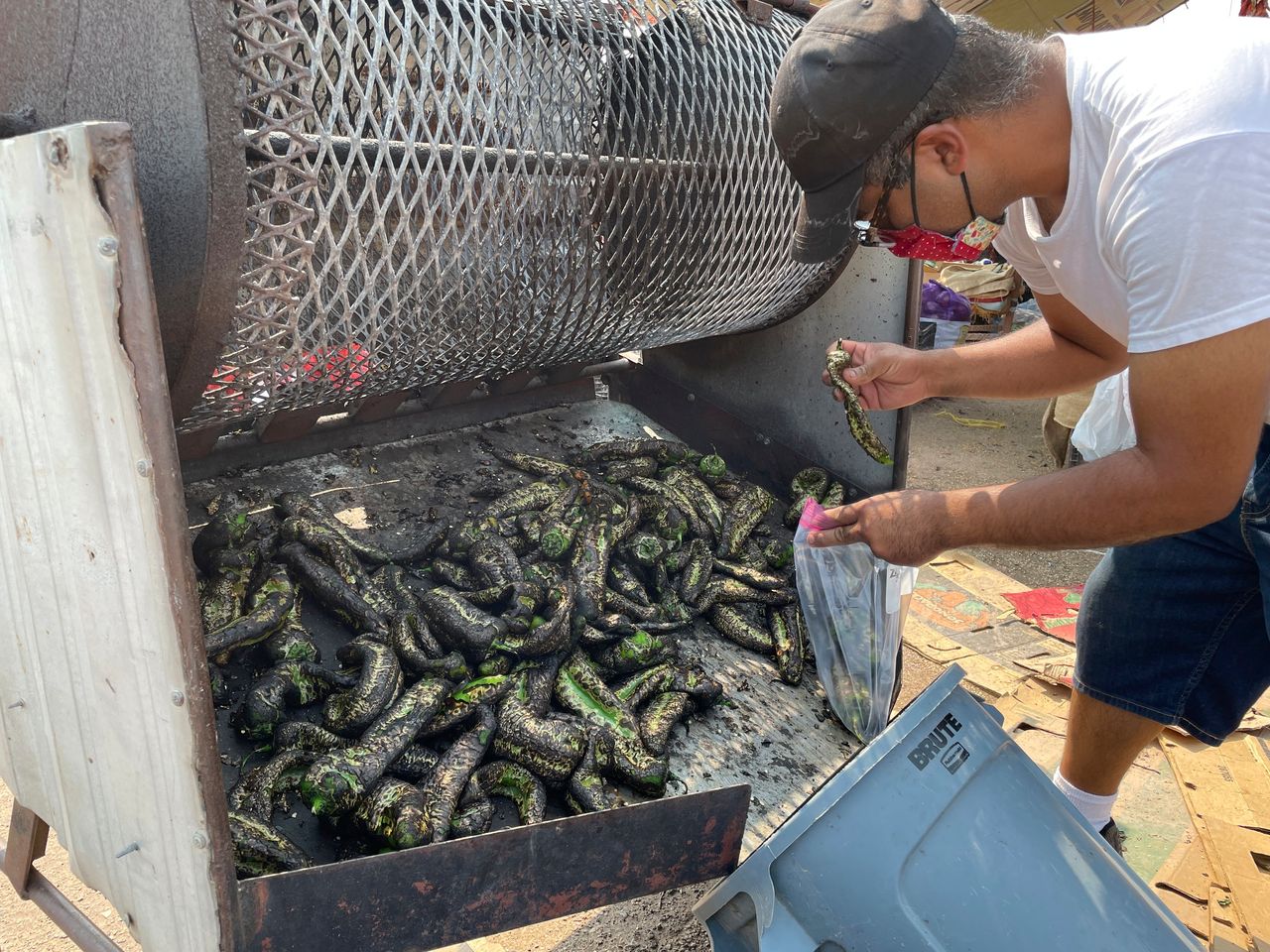 沃克女士表示,人們從農貿市場或雜貨店購買辣椒,這些辣椒在户外的大型旋轉鋼籠中烘烤,散發出煙燻、甜美的辣椒香氣。