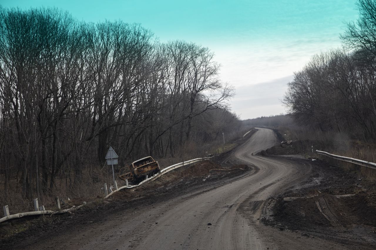 烏克蘭東部頓巴斯地區前線道路,近期戰鬥焦點區域。當俄軍發動攻擊時,他們剛挖掘散兵坑掩體約15分鐘。