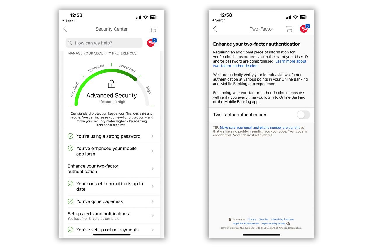 美國銀行: 該銀行會在不同時間要求通過雙重驗證確認你的身份,比如當你進行轉賬或使用未識別的設備時。但你可以設置每次在移動應用上登錄時,都通過短信或電子郵件發送驗證碼進行提示。