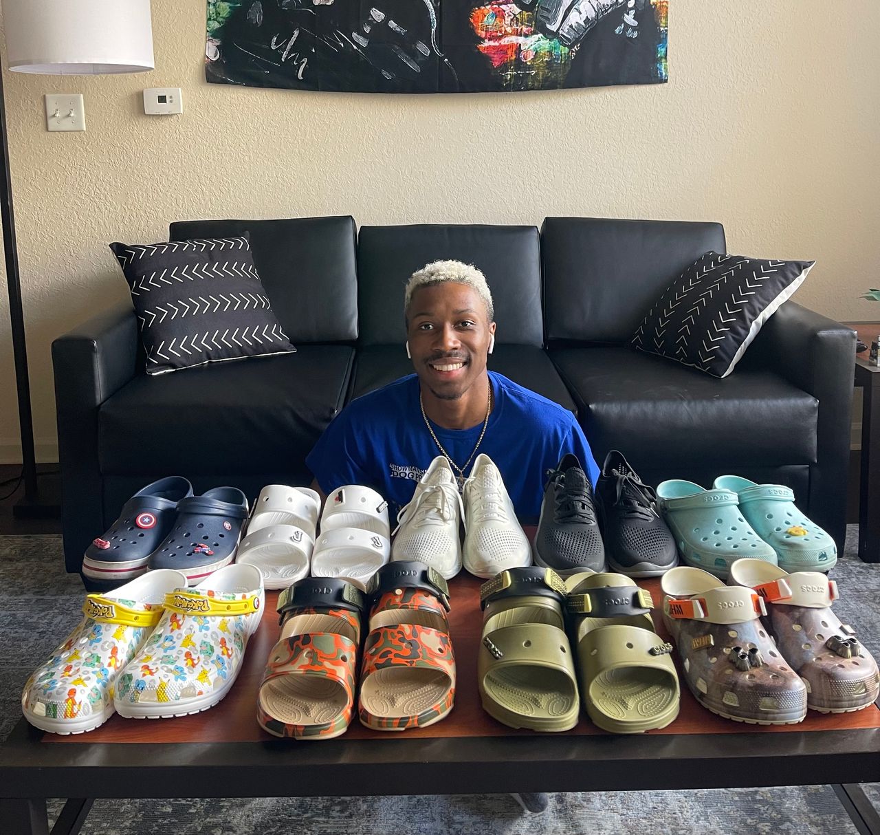 詹姆斯·蓋伊在疫情期間開始收集洞洞鞋,卻因此拖欠了其他賬單。圖片來源:詹姆斯·蓋伊2020年,蓋伊從佛羅里達州梅奧搬到塔拉哈西就讀佛羅里達州立大學,與兩位朋友合租三居室。由於全面封鎖且課程轉為線上,他表示自己通過DoorDash點外賣代替做飯,並通過網購來排解迷茫與無聊。
