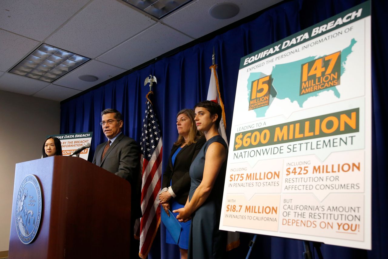 2019年,Equifax就2017年數據泄露事件達成最高7億美元的和解協議。圖為時任加州總檢察長澤維爾·貝塞拉,現任美國衞生與公眾服務部部長。圖片來源:裏奇·佩德龍切利/美聯社保險公司表示,隱私法律和監管行動使事件成本在攻擊發生後持續延伸多年,可能導致企業面臨更高成本和更嚴格的保單要求。