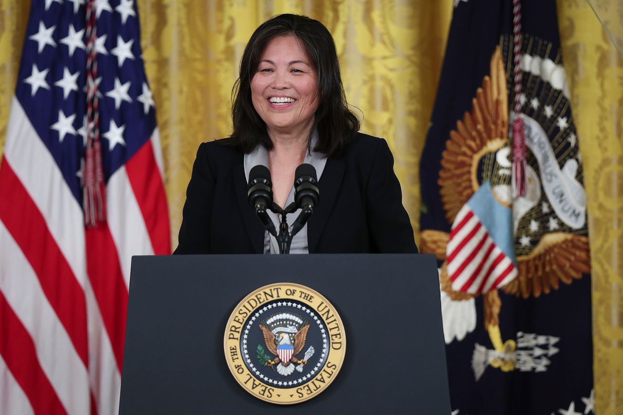 勞工部長提名人朱莉·蘇於3月1日在白宮發表講話。圖片來源:Win McNamee/Getty Images刊登於2023年4月19日印刷版,標題為《一位名叫蘇的強力勞工黨派人士》。