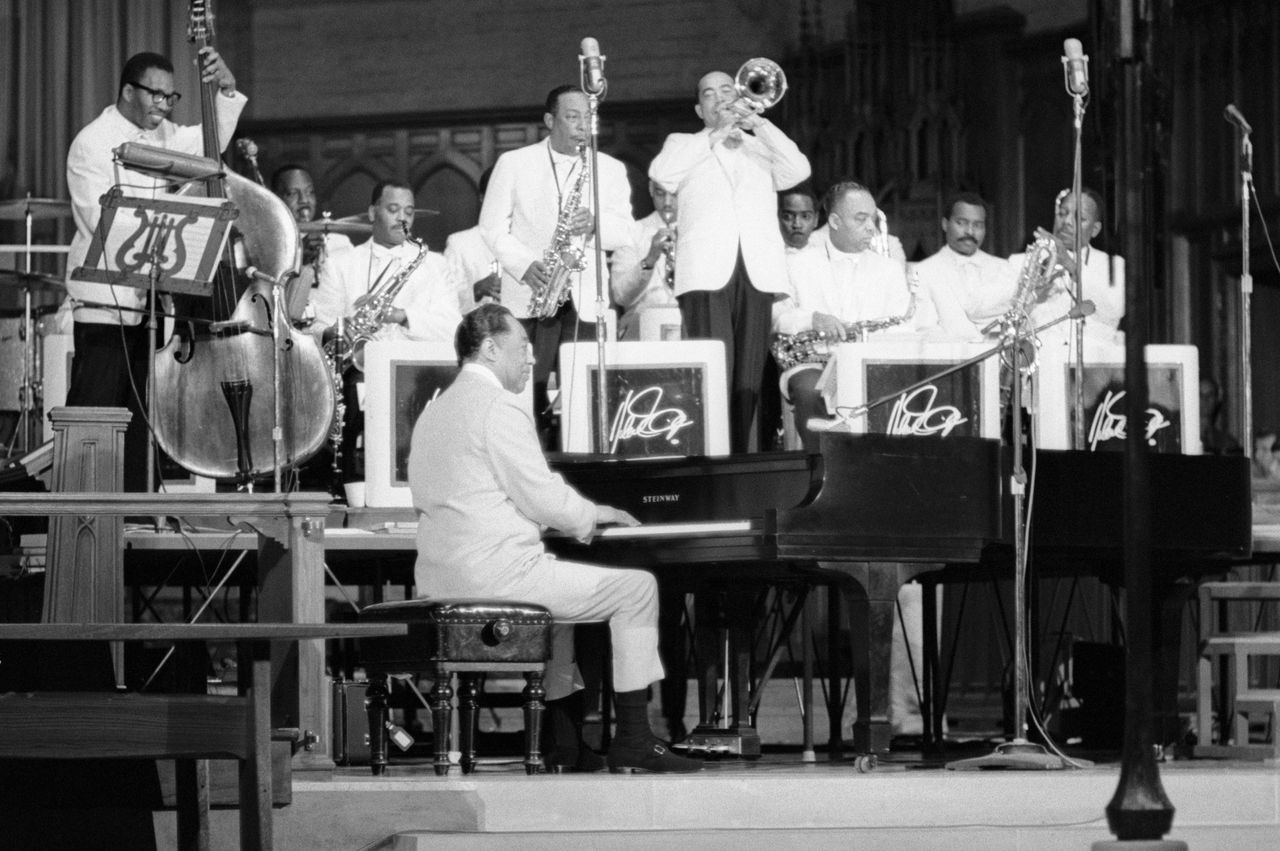 約翰·蘭姆負責貝斯,艾靈頓公爵彈奏鋼琴,約翰尼·霍奇斯吹奏中音薩克斯,勞倫斯·布朗演奏長號,地點在格蕾絲大教堂照片:貝特曼檔案館艾靈頓公爵在舊金山 Basin Street West 的化妝間裏,演出間隙。“你想聽打鼾聲嗎?”他一邊説,一邊準備躺下小憩。然而出人意料的是,他選擇與採訪者——音樂評論家、電視製片人兼主持人拉爾夫·J·格里森——以及當時已經跟拍艾靈頓一個月的攝製組交談。他坦率地分享了自己創作一些最著名歌曲的靈感來源,以及為爵士音樂家作曲的哲學(強調限制其實是變相的祝福)。他還演示了一首他正在與音樂搭檔比利·斯特雷霍恩共同創作的作品。這是艾靈頓罕見地敞開心扉,讓我們一窺他的世界和創作過程。