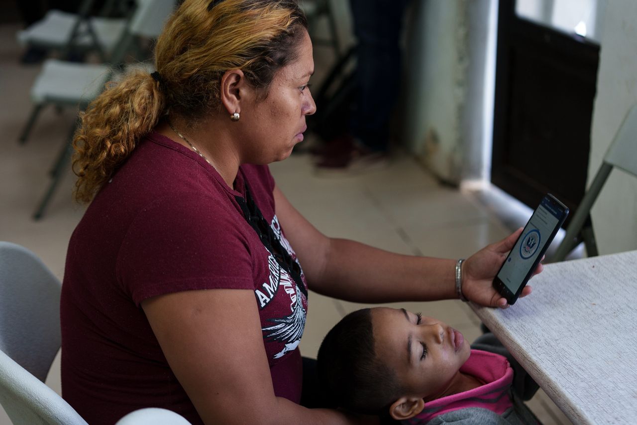 來自委內瑞拉中部農村的瑪麗亞·歐亨尼婭·格拉·岡薩雷斯,正通過CBP One應用程序嘗試為自己和4歲兒子預約入境美國的許可。儘管幾乎所有移民都攜帶智能手機——即使他們幾乎身無長物——但格拉·岡薩雷斯的手機是基礎款,難以連接收容所的Wi-Fi,她擔心成功預約可能需要數月時間。