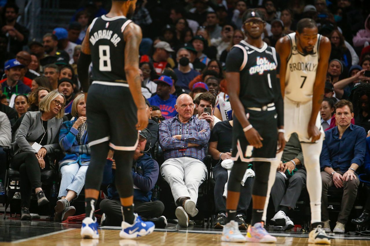 坐在快船比賽場邊的史蒂夫·鮑爾默(中)並非總是如此平靜。圖片來源:林戈·邱/Zuma Press本文發表於2023年4月20日印刷版,標題為《NBA賽場最狂熱的座位》。