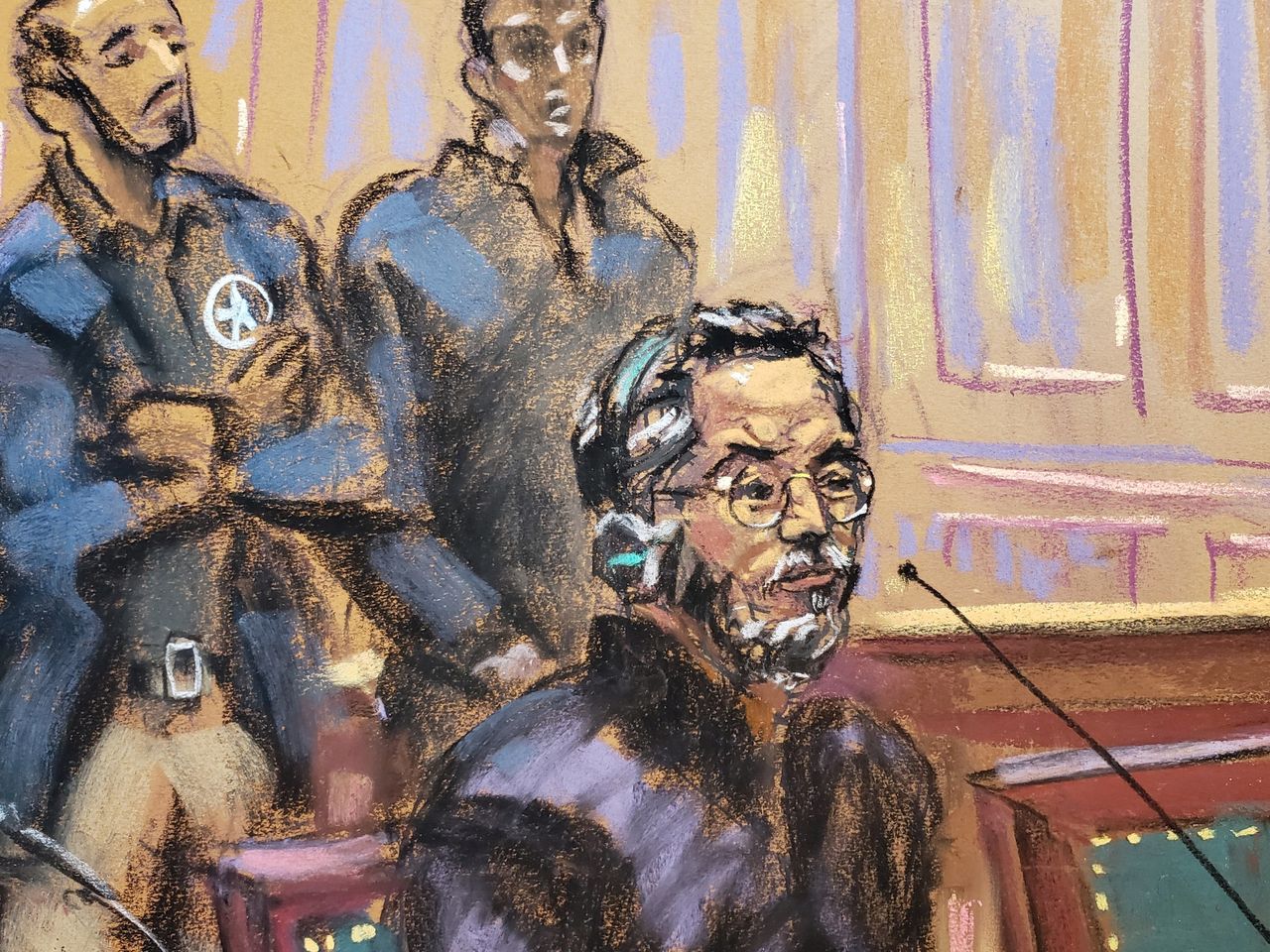 法庭素描顯示郭文貴在紐約一家法院。圖片來源:JANE ROSENBERG/REUTERS紐約一名聯邦法官週四下令在候審期間羈押中國富商郭文貴,稱他有潛逃風險,並表示司法部針對他的證據確鑿。郭文貴被控欺詐和洗錢。