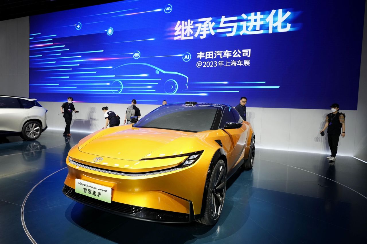 展會上展出的豐田bZ電動車。照片:共同社/Zuma Press聯繫Yoko Kubota,郵箱:[email protected]