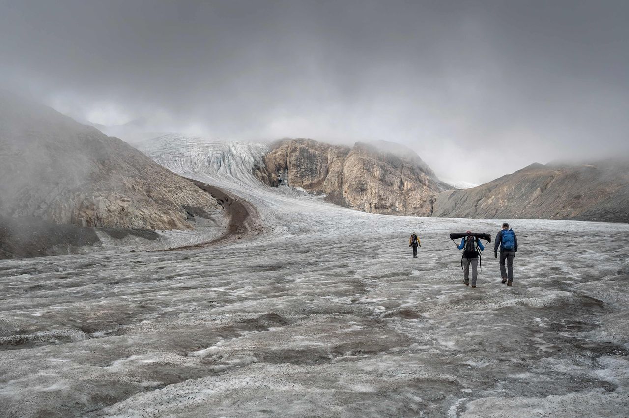 去年秋天,科學家們在瑞士的格里斯冰川,這裏的冰川自2001年以來已經縮小了三分之一。圖片來源:fabrice coffrini/法新社/蓋蒂圖片社國際氣候科學家表示,由於降雪量低於正常水平和氣温升高的雙重打擊,歐洲冰川在過去兩年中損失了創紀錄的質量。