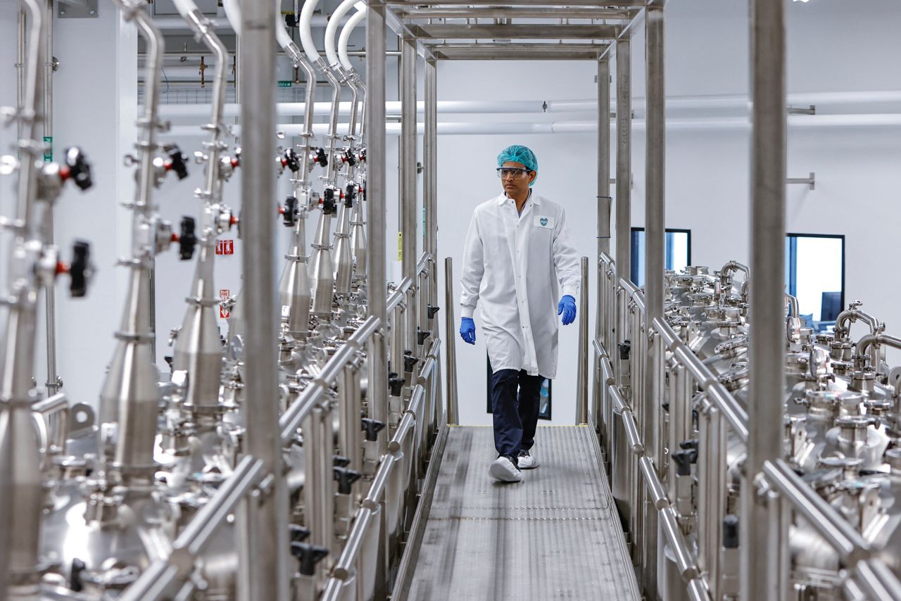 目前,該公司標誌性肉排並非在試驗工廠的大型生物反應器中培育,而是在兩升塑料瓶中進行培養,這種容器與製藥企業數十年來用於細胞培養的器皿類似。